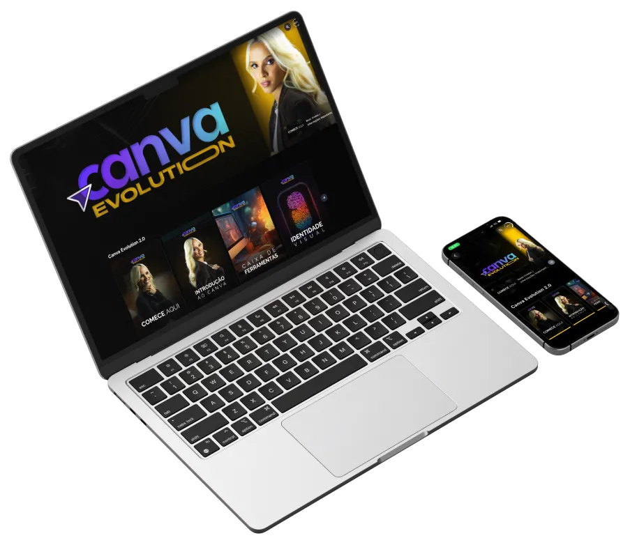 Do básico ao avançado, o Canva Evolution aborda todos os conteúdos que você precisa – sendo iniciante, intermediário ou um profissional que deseja aprimorar seus designs.